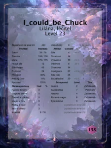 Leona si prohlíží Chuckovi statistiky po založení party.
