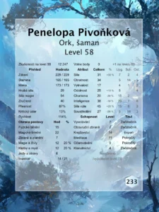 Penelopa ukazuje svoje statistiky.